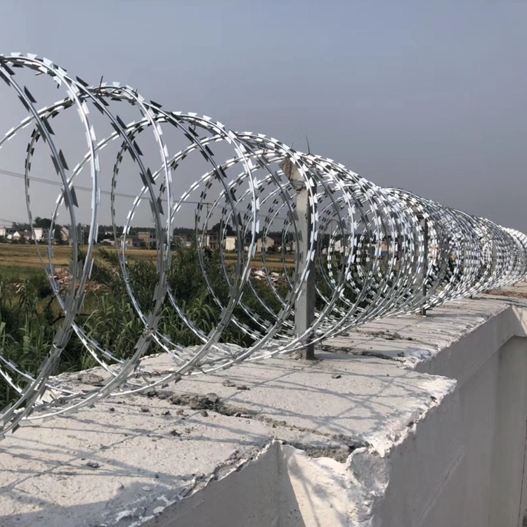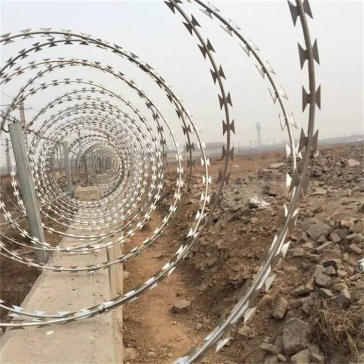 刺絲滾籠產(chǎn)品應(yīng)用:鐵路柵欄一改往日焊接鋼絲網(wǎng)柵欄、刺絲網(wǎng)柵欄等產(chǎn)品,改為防御性更強、壽命更長久的:鋼筋混凝土柵欄+0.5米高刺絲滾籠的防護柵欄。