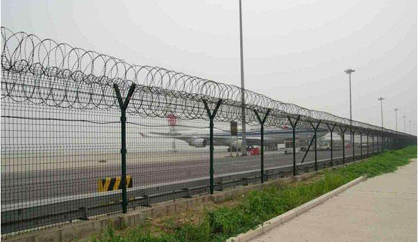 2、隔離網(wǎng)立柱間距3m,邊框與立柱采用螺栓固定邊耳式連接,邊耳均為40m* 40mmr*6m扁鐵,邊耳螺孔可調(diào),調(diào)節(jié)距離不小于15mm;邊耳固定螺栓為直徑14mm*50m全絲熱鍍鋅安全螺栓、螺母,每片網(wǎng)單邊連接點(diǎn)為6個(gè)以上。機(jī)場(chǎng)隔離護(hù)欄網(wǎng)設(shè)計(jì)要求整體連貫一致,框網(wǎng)方正,對(duì)角線誤差不大于2cm。