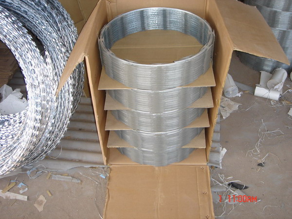 產(chǎn)品規(guī)格:芯絲:優(yōu)質鋼絲?! 〉?nbsp;片:鍍鋅鋼板,不銹鋼?! 」?nbsp;藝:熱鍍鋅-沖壓?! ⌒?nbsp;號:BTO-22,BTO-10,CBT-65,CBT-60。 特 點: 刀片刺網(wǎng)又名刮刀型刺絲,是一種近年發(fā)展起來的防護、隔離能力較強的新型防護網(wǎng)產(chǎn)品。它采用鋼板沖壓成型包附于鋼絲(筋絲)之上,由銳利尖角鍍鋅鋼板或不銹鋼薄板做刀片,高張力鋼絲做芯線組合而成的。鋒利的刀型刺由雙線扣裝后成蛇腹狀,既美觀又讓人不寒而栗。起到了很好的阻嚇作用。