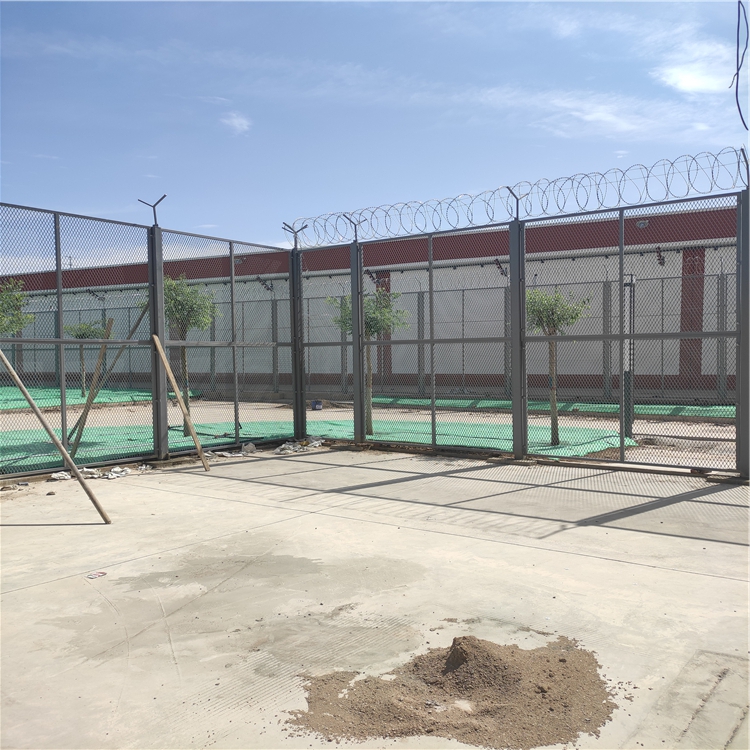 監(jiān)獄區(qū)域封閉隔離網(wǎng)網(wǎng)片:通常采用四周焊接邊框以增加整體的剛度和防護(hù)力度,網(wǎng)孔以50x200mm,50x100mm的長(zhǎng)方孔和50x50mm的正方孔為常見(jiàn),材料多為直徑為5.0mm,6.0mm,6.5mm的低碳鋼絲或鍍鋅絲焊接而成,四周的邊框一般為方鋼,規(guī)格可根據(jù)實(shí)際的網(wǎng)片大小而定,如30x30mm,40x40mm,30x50mm,50x50mm等,在這里我們需要強(qiáng)調(diào)一下,監(jiān)獄隔離網(wǎng)與其他場(chǎng)所使用的隔離網(wǎng)的邊框設(shè)計(jì)上是有一些區(qū)別的,那就是監(jiān)獄隔離網(wǎng)一般不允許中間加橫撐(中央起到橫向支撐網(wǎng)子的作用),這里面的原因就不言而喻了。邊框的左右兩側(cè)一般會(huì)焊接側(cè)邊耳鋼板,以便于和兩側(cè)的立柱相連接。