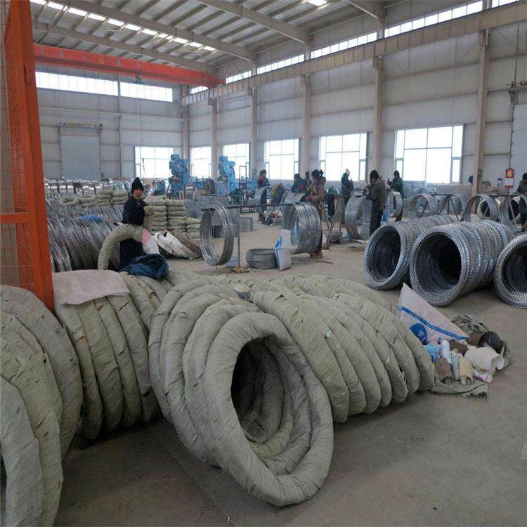 ?。?)、高鐵刺絲滾籠采用刀片刺繩繞圈后相臨兩圈每隔120°用刺絲連接卡固定,張開(kāi)后形成蛇腹網(wǎng)狀,閉合后刀片刺繩圈徑為50cm,張開(kāi)后每交叉圈安裝間距20cm,直徑不小于45cm。