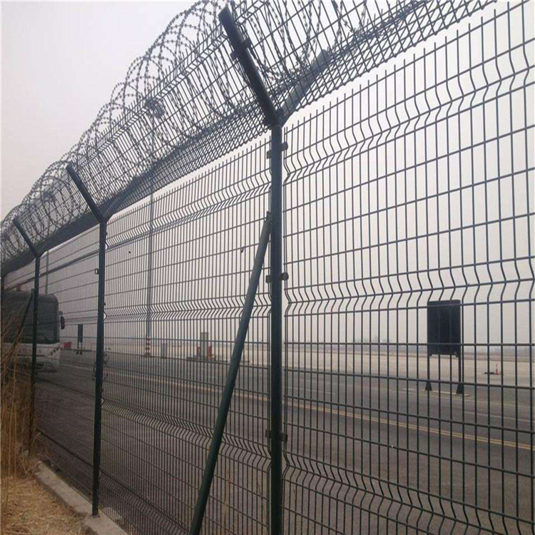 機場鋼筋圍界網(wǎng)可以在惡劣的地形上進行安裝調(diào)整,適應(yīng)性非常強。原料采用高強度低碳鋼絲制成,具有堅固耐用,沖擊強勁,不易損壞,使用期限長的特點。頂部可以加裝一個刀片刺絲,刀片刺絲的安裝可以增強安全管理系統(tǒng)的防護作用。機場鋼筋圍界網(wǎng)可以采用電鍍、熱鍍、噴塑、浸塑等防腐處理工藝,因此具有很好的抗老化、抗曬、耐候、耐腐蝕等特征。外觀美麗,簡約大方,可以根據(jù)用戶需求定制各種規(guī)格的護欄網(wǎng)產(chǎn)品。不僅具有較高的安全系數(shù),還具有運輸便利和安裝簡單的特點。