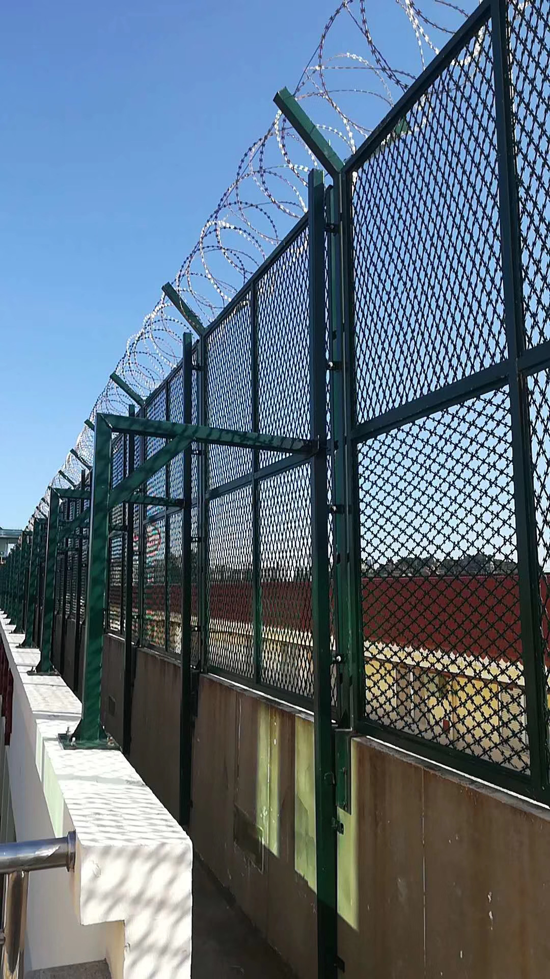 巡邏道安全網(wǎng)具有嚇阻、防翻越等效果,材質(zhì)堅(jiān)硬,度,高張力,造型設(shè)計特,不宜觸摸,因而能達(dá)到的防護(hù)隔離效果.監(jiān)獄護(hù)欄網(wǎng)還具有施工簡便材質(zhì):監(jiān)獄防護(hù)網(wǎng)選用低碳鋼絲、鋁鎂合金絲編制焊接而成。監(jiān)獄護(hù)欄網(wǎng)網(wǎng)格結(jié)構(gòu)簡練、便于運(yùn)輸、安裝不受地形起伏限制,特別是對于山地、坡地、多彎地帶適應(yīng)性