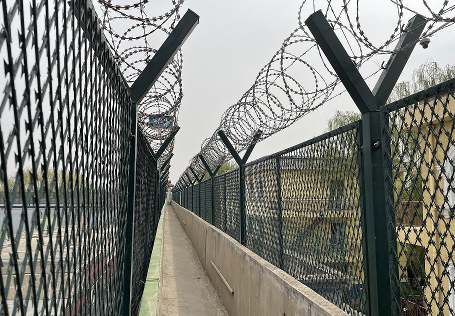 監(jiān)獄菱形焊接刀刺網(wǎng)中間焊接的刀片刺網(wǎng)和蛇腹網(wǎng)結(jié)合使用,使人望而卻步,擊破人的僥幸心理。