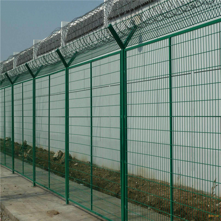 監(jiān)獄鋼網(wǎng)墻的特點(diǎn):內(nèi)側(cè)或頂部加裝螺旋雙交叉式蛇腹形刀刺網(wǎng),形成一道高不可攀、難以逾越的隔離障礙。具有堅(jiān)固耐用、美觀大方、刀片鋒利、防攀爬、抗強(qiáng)風(fēng)、抗沖擊、抗剪切、抗腐蝕,其產(chǎn)品花色多樣,美觀大方,根據(jù)顏色的調(diào)配能與當(dāng)?shù)鼐坝^達(dá)成一致。其安全性能系數(shù)高、防攀爬能力好,網(wǎng)片連接方式采用鍍鋅防盜螺絲連接,有效防止人為的破壞性拆卸。