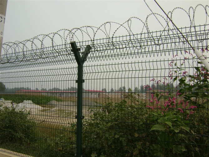 大家都特別關(guān)注機(jī)場(chǎng)圍界網(wǎng)的使用年限問題,因?yàn)闄C(jī)場(chǎng)圍界網(wǎng)的價(jià)格特別高,所以使用壽命也在是十幾年左右。俗話說一分錢一分貨真的沒錯(cuò),機(jī)場(chǎng)圍界網(wǎng)的原材料一般都是由塑后6mm的絲焊接而成的,網(wǎng)孔一般是50*100mm,而且有四道加強(qiáng)筋起加強(qiáng)的作用。高度一般也在2.4M以上,并且都含刀片刺繩。因此又被叫作“Y型安全防御護(hù)網(wǎng)”,是由V型支架立柱,加強(qiáng)型焊接片網(wǎng),安全防盜連接件和熱鍍鋅刀片刺網(wǎng)組成。所以以上原因造就了機(jī)場(chǎng)護(hù)欄不僅使用壽命極長(zhǎng),而且防御系數(shù)非常高。