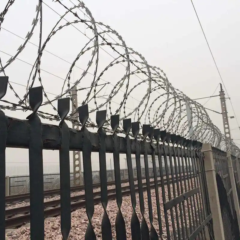 跨度為3米。在用刀片纏繞帶刺鐵絲網(wǎng)之后,每隔120度用帶刺鐵絲網(wǎng)夾固定帶刺鐵絲網(wǎng),并用柵欄代替柵欄。圍欄更具防御性。壽命更長(zhǎng):鋼筋混凝土圍欄+ 0.5米高BARBED滾動(dòng)保持架。拼接支架由矩形鋼管制成,與柱支架相同。該產(chǎn)品具有防腐,抗老化,抗日光和耐候性的特點(diǎn)。施工速度快,不僅省錢,而且有效地起到了威懾作用