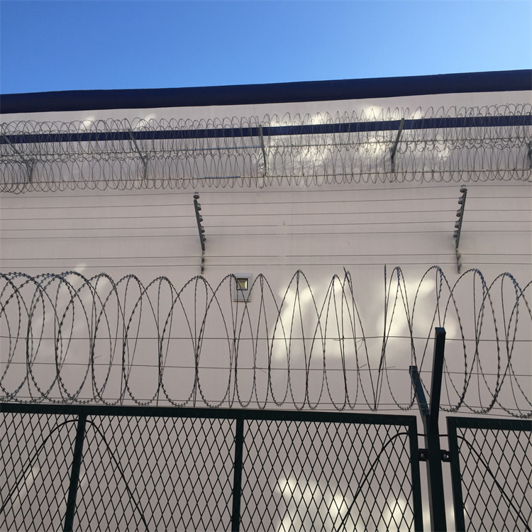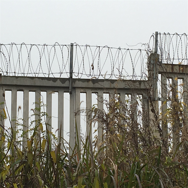 高鐵專用刺絲滾籠安裝方法;廣泛應(yīng)用于住宅區(qū),重要倉庫,工廠,邊防軍事場所等需要封鎖的場所。在打開之后,每個交叉圓的安裝距離為20厘米,直徑不小于45厘米。與立柱平放,埋在地下不小于0.3m,并且刺絲滾籠由0.5mm厚的Q195鋼板制成。支架放置在保護(hù)柱和中間跨度,跨越3米,另一個跨度僅放置在立柱的上部。安裝間距為20厘米,環(huán)直徑不小于45厘米。兩個支架的高度一般為730mm,上側(cè)有兩個掛鉤。加密支架重約1.73千克,厚度為2毫米。刺絲滾籠的跨度僅放置在柱的上部。刺絲滾籠是熱浸鍍鋅的。鍍鋅量通常為120g/m 2。 8毫米直徑夾具形狀是專門設(shè)計的螺母和防盜墊圈。外圍加工應(yīng)美觀,具有良好的實用。