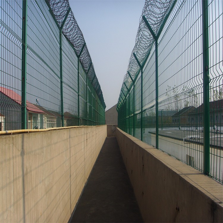 監(jiān)獄區(qū)域封閉隔離網(wǎng)組成結(jié)構(gòu):首先把網(wǎng)片焊接在鐵管框架上,框架是方管或者圓管焊接成的框架結(jié)構(gòu),在框架上焊接用于個(gè)立柱連接的連接板