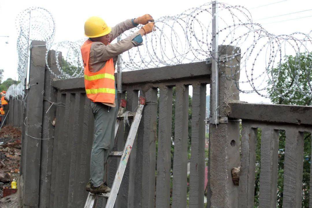 鐵路刺絲滾籠是近年防護(hù)、隔離能力較強的新型產(chǎn)品,廣泛用于高檔住宅小區(qū)、重要倉庫、監(jiān)獄、邊防軍事重地等需要封鎖圍禁場所。它的主要構(gòu)件有:刀刺滾籠(由鋒利的刀片和高抗拉強度的芯線構(gòu)成)、縱向掛絲、立柱支架、加密支架、支架抱箍。安裝好的刺絲滾籠能很好地起到阻擋闖入者的作用