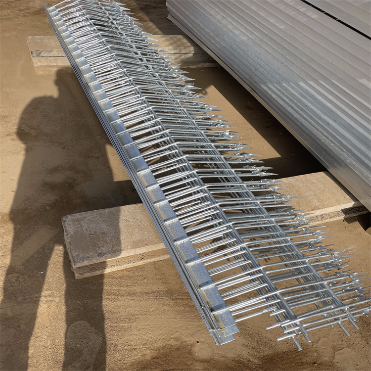 1. 防爬倒刺橫向、豎向鋼筋采用鍍鋅直徑12mm圓鋼,豎向鋼筋總長度為70cm(直線部分是40cm,彎折角度135°,彎折部分為30cm, ,端頭5cm部分鋼筋壓成尖形;