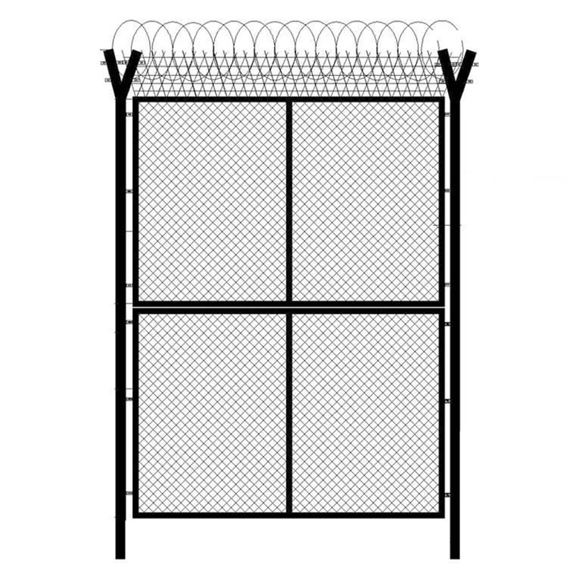 監(jiān)獄圍墻加高網(wǎng)網(wǎng)絲材質(zhì)一般選用Q235碳素鋼,網(wǎng)格大小:50mm×150mm堅(jiān)密格型網(wǎng)加三道折彎,加固定框。網(wǎng)片固定框:20×20× 1.5mm國標(biāo)方鋼管,增加一道垂直中稱。網(wǎng)絲直徑:5mm,網(wǎng)片尺寸:2000mm-2500mm(可根據(jù)實(shí)際可用空間合理調(diào)整)。立柱規(guī)格:Y型柱直徑60mm×60mm×2.5mm方鋼。柱與網(wǎng)框連接方式:防盜螺絲貫穿式連接。網(wǎng)片頂端安裝刀片刺繩:芯絲直徑2.5mm、刀長21mm,刀寬15mm,刀片刺繩直徑500mm-600mm。