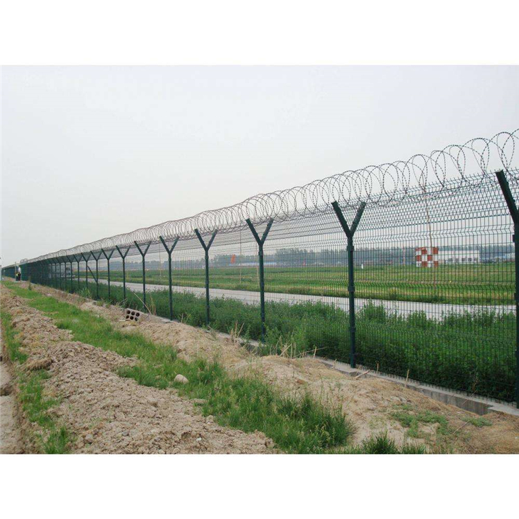 機(jī)場安裝圍界網(wǎng),一方面起到了良好的隔離防護(hù)作用,另外一方面機(jī)場圍界網(wǎng)也具有更好的隔離疏導(dǎo)方面優(yōu)勢,機(jī)場圍界網(wǎng)又稱為機(jī)場Y型防護(hù)網(wǎng),一般采用了金屬立柱、鋼絲或者是防堵圍欄裝置,形成更為耐用,并且安裝穩(wěn)定高效的護(hù)欄產(chǎn)品,在一些機(jī)場跑道,各種機(jī)場兩側(cè)圍欄防護(hù)方面中,更加具有優(yōu)勢、以及全面高效的作用。機(jī)場圍界網(wǎng)是一種綠色浸塑 、網(wǎng)孔面積均勻 、立柱加固、鋼筋混凝土底盤焊裝形成的堅(jiān)固、美觀防護(hù)產(chǎn)品。機(jī)場圍界網(wǎng)具有如下特點(diǎn):