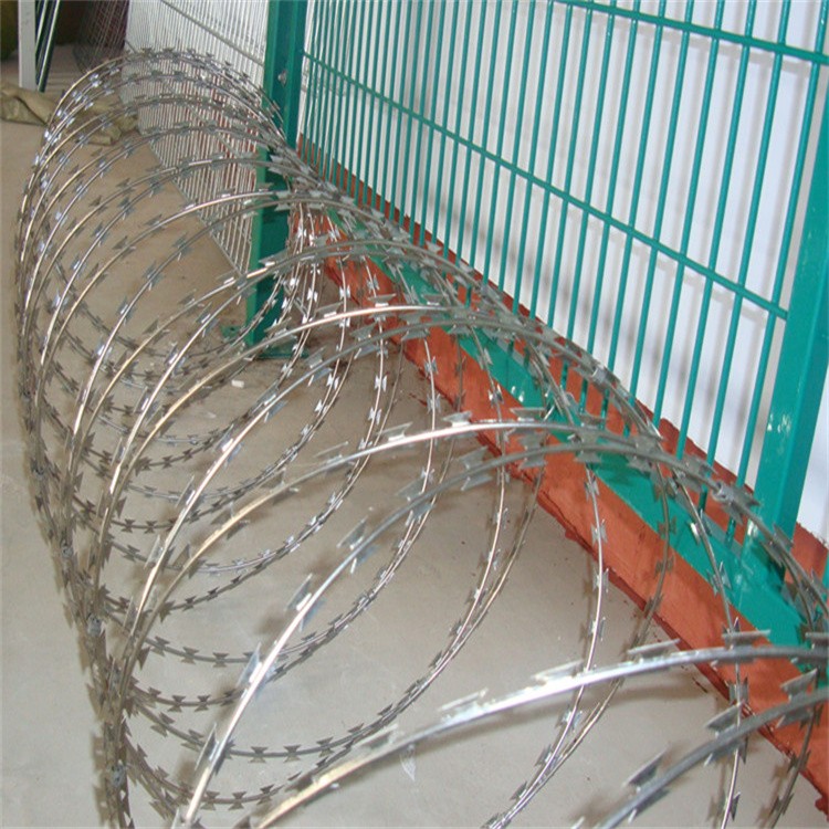 刀片刺網(wǎng)是片狀刀型帶刺鐵絲繩制造之后,經(jīng)過生銹的防護(hù)加工而形成的,外圍應(yīng)該有很好的防銹作用,外圍加工應(yīng)該好看,并且能很好的實(shí)用價(jià)值,安裝起來更加方便,性價(jià)比較高一些等優(yōu)點(diǎn)。刀片刺網(wǎng)是將塑料漆涂抹在刀片刺繩上的表面加工方式。是經(jīng)常見到的靜電涂抹方式,能固定在鐵絲網(wǎng)或鐵絲板的外圍上,之后需要進(jìn)行200度的熱處理,使塑料漆或粉狀涂料粘合在鐵絲板的面上,這些涂有塑料漆的一般都是用在室內(nèi)的箱子上,塑料漆的表面看起來整體質(zhì)感很好,粘合力很強(qiáng),同時(shí)更加耐用,涂層加工起來用不了太長(zhǎng)時(shí)間,主要是防銹防腐效果相當(dāng)好,要比一般材料好出不少。