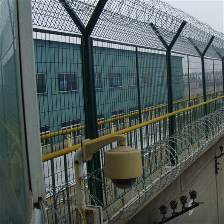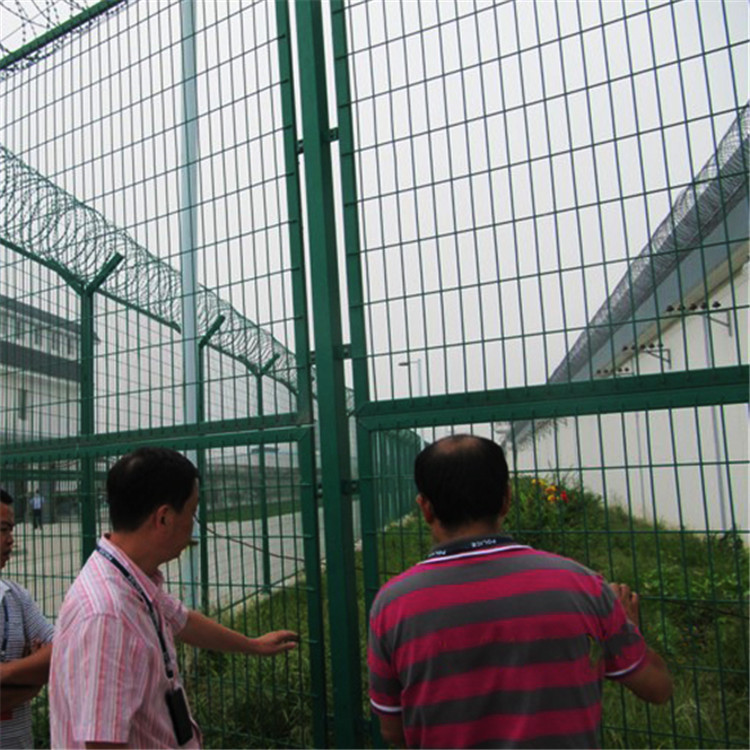 質(zhì),然后在進(jìn)行塑料包裹處理,也就是常說的靜電噴涂和浸塑處理。監(jiān)獄隔離網(wǎng)頂部必須安裝防止跨越的蛇腹型刀刺網(wǎng),立柱規(guī)格不得小于