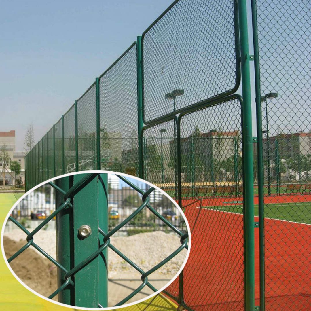 第三種方式有邊框:連接片+防盜螺絲連接護(hù)欄網(wǎng)直接將勾花網(wǎng)焊接在邊框上,這種方法首要先焊接固定好體育圍網(wǎng)邊框,然后把勾花網(wǎng)打開焊接到邊框上,這種方法加工起來比較費(fèi)力費(fèi)時(shí),現(xiàn)在體育圍網(wǎng)很少選用這種方式。