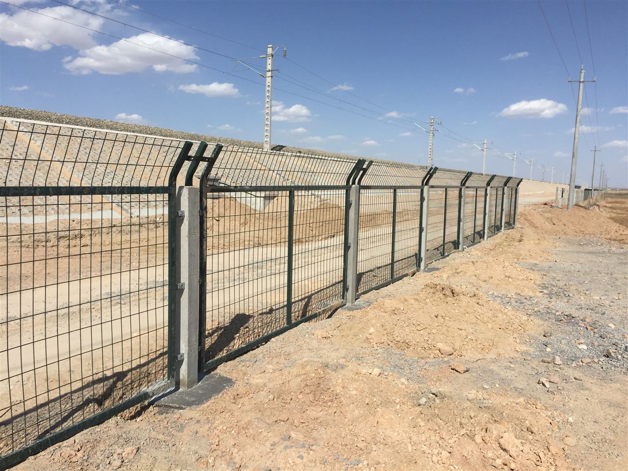鐵路防護柵欄金屬網(wǎng)片由立柱、網(wǎng)片及連接部件組成,防護高度1.8m。