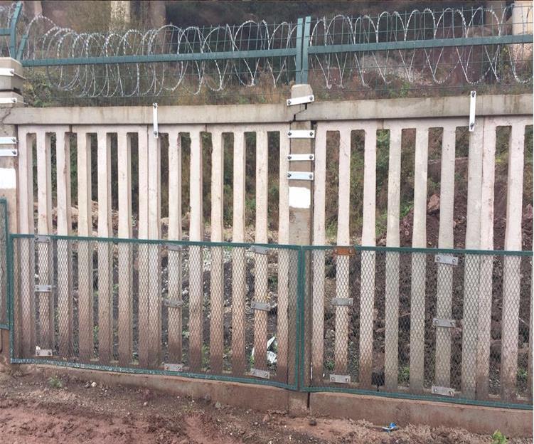 1、網(wǎng)片規(guī)格:高1.1m金屬浸塑網(wǎng)片,網(wǎng)片令拔絲直徑不小于3.5mm,鐵路混凝土立柱加高網(wǎng),浸塑厚度不小于0.3mm;每個網(wǎng)格高不大于10cm,寬不大于5cm。