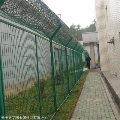 監(jiān)獄也需求隔離網進行防護,但監(jiān)獄所需求的護欄網是防護性較高的護欄網。監(jiān)獄鋼網墻又稱作監(jiān)獄隔離網,主若是選用高強度的刀片刺網與尋常防護網的融合,由V型支架立拄,加強型焊接片網,平安防盜連接件和刀片刺網構成。刀片刺網是一種新型防護網,由銳利尖角鍍鋅鋼板或不銹鋼薄板做刀片,鋼絲做芯線組合而成的防護器械。