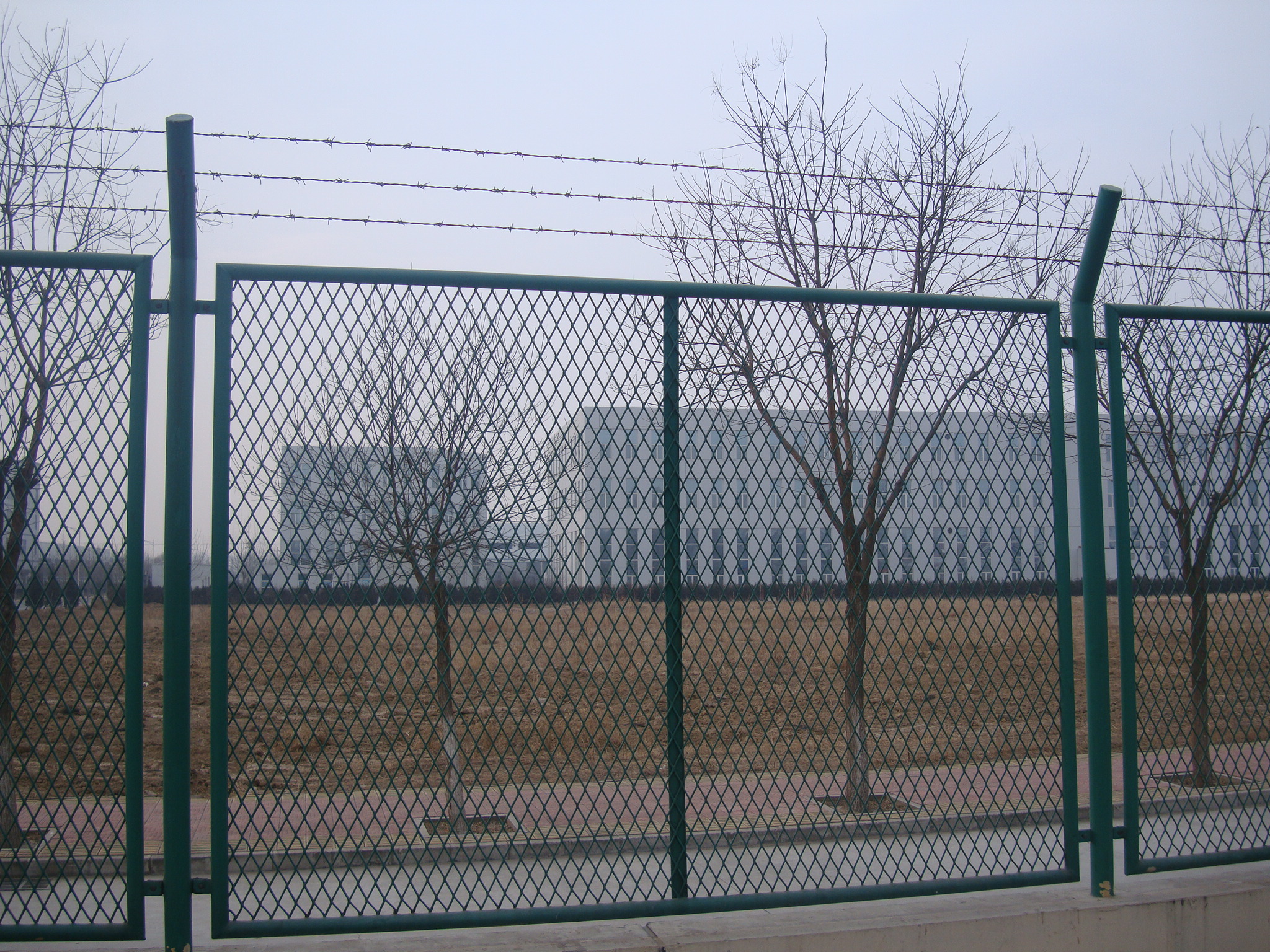 隔離網(wǎng)部分可采用鋼筋焊接隔離網(wǎng)、密紋隔離網(wǎng)、鋼板網(wǎng)沖拉隔離網(wǎng)、刀刺焊接網(wǎng)等等。高度一般為4米-5米,更好的來防止攀爬。