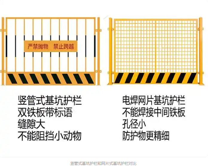 具體選擇豎管樣式基坑護(hù)欄還是網(wǎng)片基坑護(hù)欄,這個要根據(jù)自己的實際需求,其實這兩種樣式的基坑護(hù)欄都已經(jīng)滿足了防護(hù)需求。豎管縫隙大,不能攔截小型動物,而網(wǎng)片基坑可以。