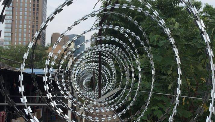 鍍鋅刀片刺網(wǎng)又名刮刀型刺絲,是一種發(fā)展起來(lái)的防護(hù)、隔離能力較強(qiáng)的新型防護(hù)網(wǎng)產(chǎn)品。 鋒利的刀型刺由雙線(xiàn)扣裝后成蛇腹?fàn)睿让烙^(guān)又讓人不寒而栗。到了很好的阻嚇作用。同時(shí)該產(chǎn)品具有美觀(guān)、防阻效果好、施工便利等優(yōu)點(diǎn)。