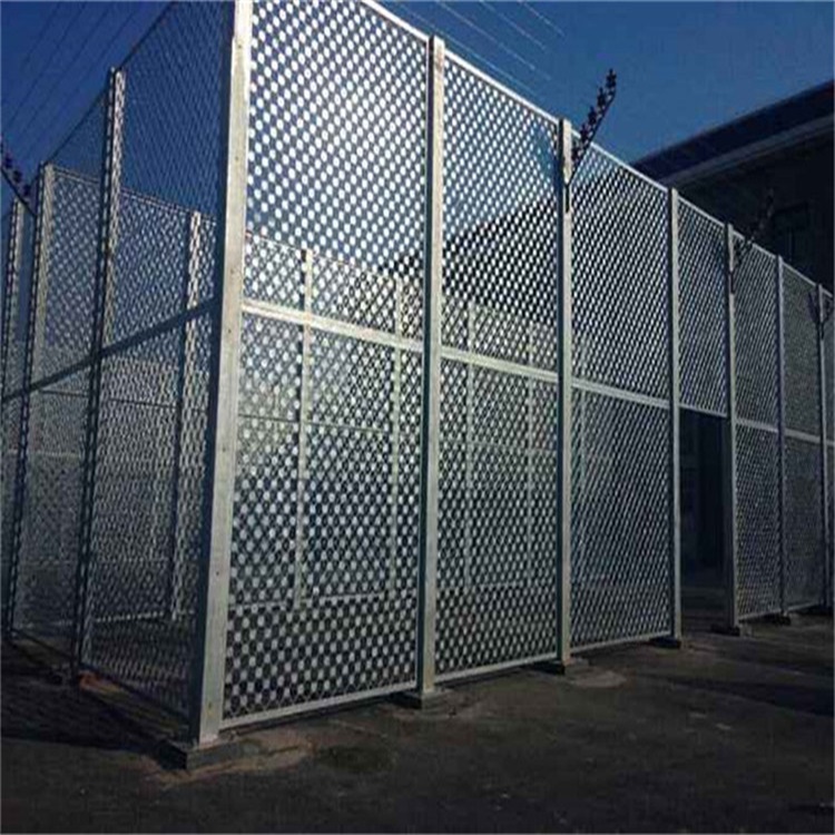 監(jiān)獄隔離網(wǎng)由網(wǎng)片,立柱,刀刺網(wǎng)組合而成,監(jiān)獄隔離網(wǎng)網(wǎng)片通常四周焊接邊框以增加整體的剛度和防護(hù)力度,網(wǎng)孔以50x200mm, 50x100mm的長(zhǎng)方孔和50x50mm的正方孔為常見(jiàn),材料多為直徑為5.0mm, 6.0mm的低碳鋼絲或鍍鋅絲焊接而成,四周的邊框一般為方鋼, 規(guī)格可根據(jù)實(shí)際的網(wǎng)片大小而定,如20x30mm,30x30mm,40x40mm, 30x50mm等 ,邊框的左右兩側(cè)一般會(huì)焊接側(cè)邊耳鋼板,以便于和兩側(cè)的立柱相連接。