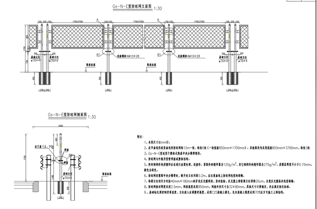 2、在平曲線段或豎曲線段防眩網(wǎng)每12m一組,每組6塊(一塊規(guī)格850mm*1700mm);其他路段均采用規(guī)格850mm*3700mm,每組3塊。