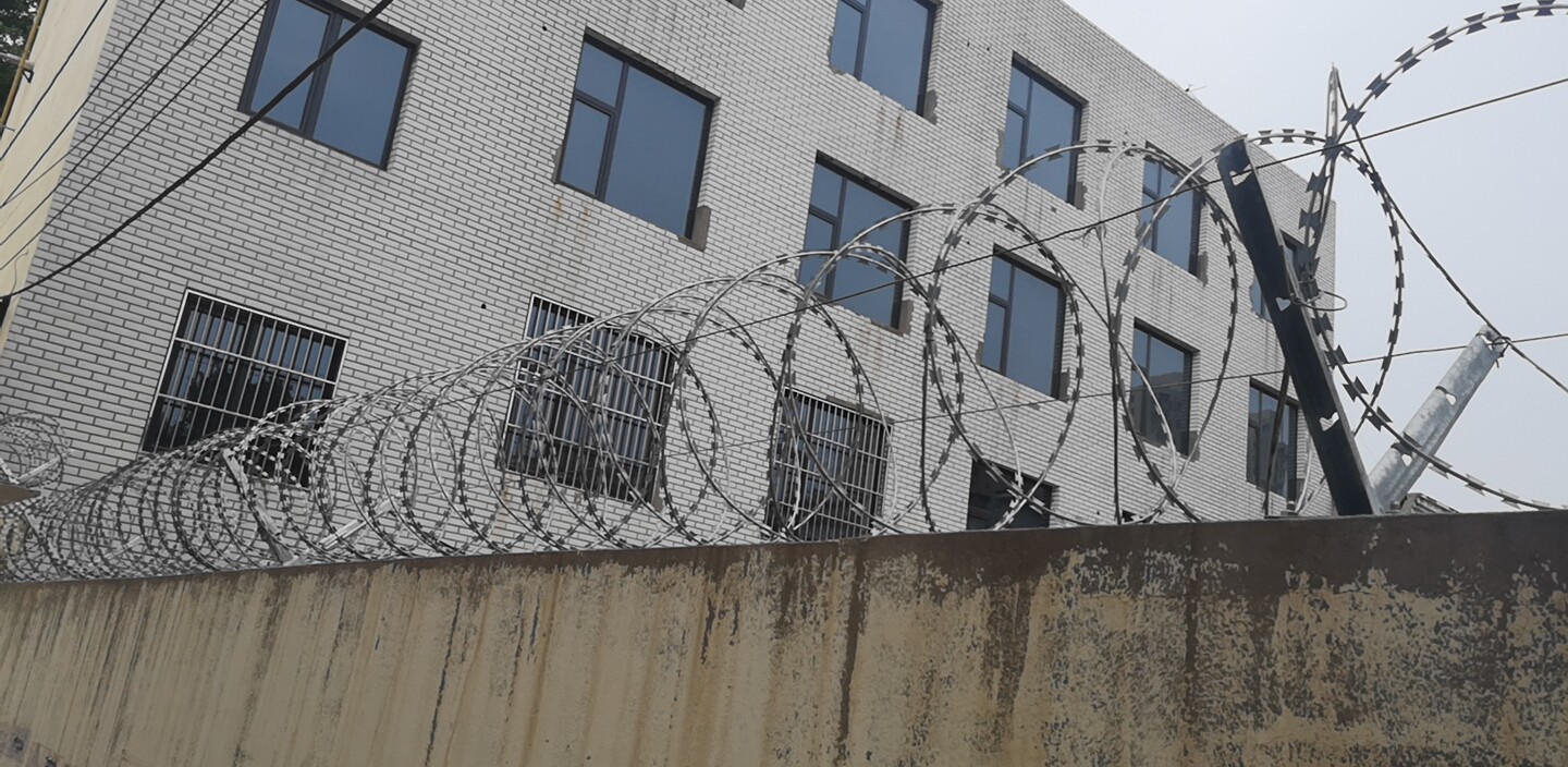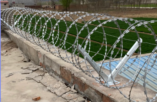 ?刺網(wǎng)鋪設(shè)?:展開刺繩后通過拉筋固定,用刺絲連接卡每120度加固。??