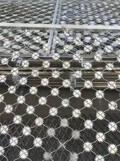 1、太陽(yáng)花刺片監(jiān)獄鋼網(wǎng)墻為單層梅花刺片網(wǎng),直徑不小于7.5cm,刺片厚1.5mm,采用Q235低碳鋼板沖壓成型。