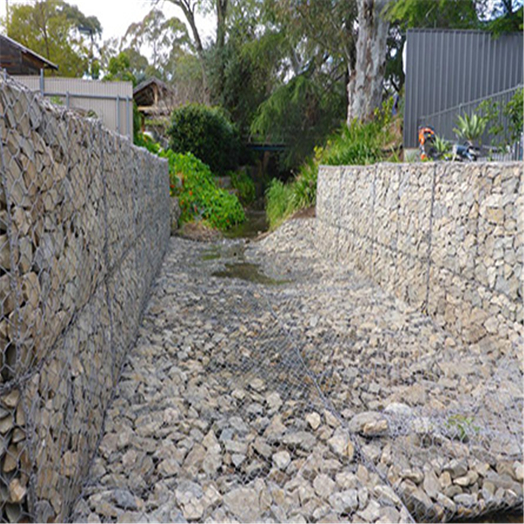 網(wǎng)箱結(jié)構(gòu)為石籠。根據(jù)ASTM和EN標準,所用低碳鋼絲的直徑根據(jù)工程設(shè)計要求而變化。一般在2.0-4.0 mm之間,格賓網(wǎng)鋼絲抗拉強度不小于380kg/㎡,金屬鍍層重量一般大于245g/㎡,格賓網(wǎng)邊線直徑一般大于網(wǎng)線直徑。雙絞線部分的長度不應(yīng)小于50 mm,以確保線股部分的金屬涂層和PVC涂層不受損壞。河邊長期的雨水沖刷,很容易造成水土流失,山體滑坡。嚴重的河水沖刷河岸甚至造成的洪水,會造成大量財產(chǎn)損失和嚴重影響人民群眾的生命健康。因此,為了解決上述問題,網(wǎng)格生態(tài)網(wǎng)架結(jié)構(gòu)是較好的解決方案之一,它可以使河床和河岸得到長時間的保護。