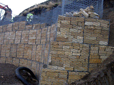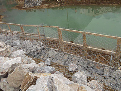 石籠網(wǎng)箱在施工現(xiàn)場經(jīng)石頭填充,構(gòu)成具有柔性、透水性及整體性的結(jié)構(gòu), 如擋墻、河道襯砌、堰等支擋的防沖蝕工程。 石籠網(wǎng)箱由間隔1米的隔板(雙絞合六邊形金屬網(wǎng)片)分成若干單元格,為了加強(qiáng)石籠網(wǎng)箱結(jié)構(gòu)的強(qiáng)度, 所有的面網(wǎng)板邊端均采用直徑更粗的鋼絲。控制和引導(dǎo)河流及洪水泄洪壩、導(dǎo)流壩巖崩防護(hù)、防止水土流失、大橋保護(hù)、固土結(jié)構(gòu)、海濱防御工程、港口工程和擋土墻道路防護(hù).