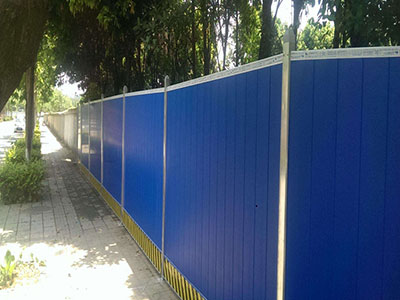 圍擋基腳采用M10水泥砂漿砌筑MU10頁巖磚磚砌0.5*0.5的基礎(chǔ),用于增強(qiáng)圍擋抗風(fēng)穩(wěn)定性;pvc圍擋設(shè)2.5米高,寬3米為一板。施工圍擋做美化處理,噴涂企業(yè)名稱、安全、質(zhì)量、文明施工用語及開發(fā)項(xiàng)目商業(yè)廣告,嚴(yán)禁張貼、涂寫垃圾廣告。