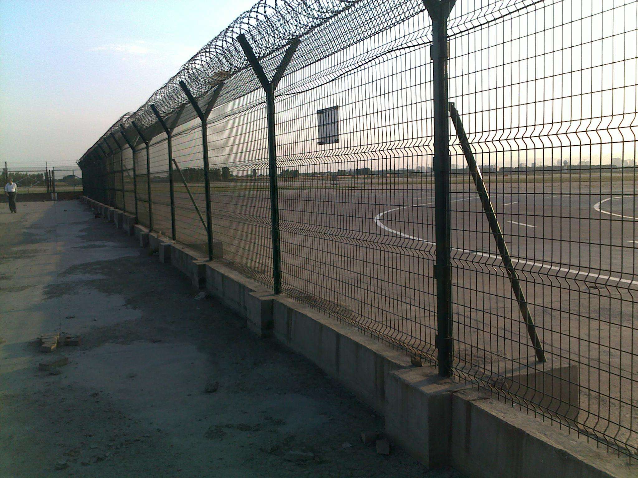 機(jī)場(chǎng)圍網(wǎng)是用于飛機(jī)場(chǎng)周邊起安全防范的一種護(hù)欄網(wǎng)。機(jī)場(chǎng)防護(hù)網(wǎng)造型一般為Y字形,它在原有的基礎(chǔ)上加裝了刀片刺繩,大大增加了安全防范性能。網(wǎng)片結(jié)構(gòu)簡(jiǎn)練便于運(yùn)輸。采用電鍍、熱鍍、噴塑、浸塑等防腐形式,具有很好的抗老化、抗曬、耐腐蝕等特點(diǎn)。機(jī)場(chǎng)圍網(wǎng)的安裝不受地形起伏限制,多彎道地帶適應(yīng)性極強(qiáng)。我們廠家專業(yè)生產(chǎn)機(jī)場(chǎng)圍網(wǎng),各種鋼網(wǎng)墻。如有需要,歡迎來(lái)電咨詢。