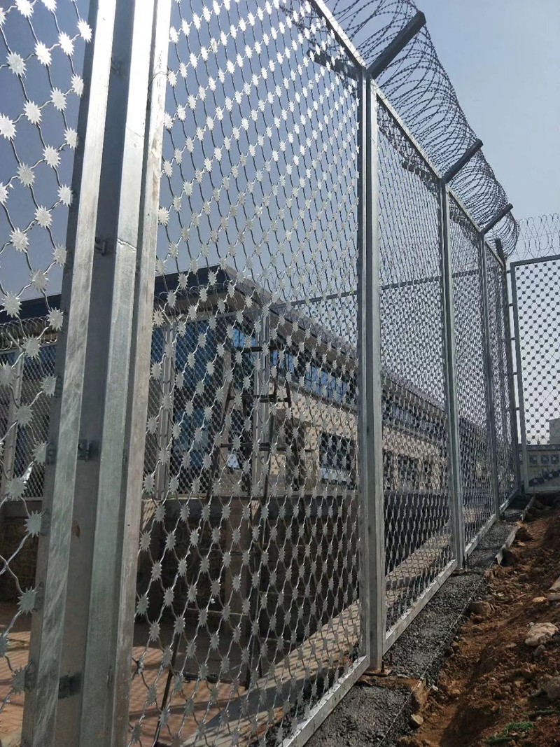 監(jiān)獄梅花刺網(wǎng)又叫沖壓刺隔離網(wǎng)、太陽花刺片隔離網(wǎng),行業(yè)內(nèi)簡稱梅花刺網(wǎng)。其特點(diǎn)為堅固牢靠、防止攀爬等。梅花刺隔離網(wǎng)一般用于監(jiān)獄大門,探監(jiān)門,人員通道兩邊的隔離網(wǎng),由于其成本造價高,所以還沒有廣泛替代焊接式隔離網(wǎng)。