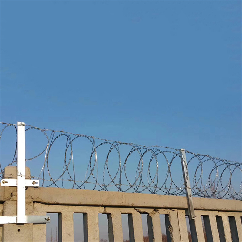 刀片刺繩的安裝要求: 1 、刀片刺繩防護(hù)柵欄安裝時(shí)做到:嚴(yán)、齊、順、美,橋下封閉不得留有空隙,柵欄方向沿橋梁方向順直。 2 、柵欄安裝時(shí),應(yīng)對(duì)柵欄兩側(cè)地面進(jìn)行平整壓實(shí),當(dāng)柵欄設(shè)置在坡地或柵欄兩側(cè)存在高低差時(shí),應(yīng)將柵欄兩側(cè)范圍高出部分進(jìn)行平整,保證柵欄對(duì)于兩側(cè)地面均達(dá)到防護(hù)高度。 3 、刀片刺繩與線路防護(hù)柵欄連接橋下防護(hù)柵欄應(yīng)與線路防護(hù)柵欄進(jìn)行緊密順接,防止先接觸出現(xiàn)較大間隙。