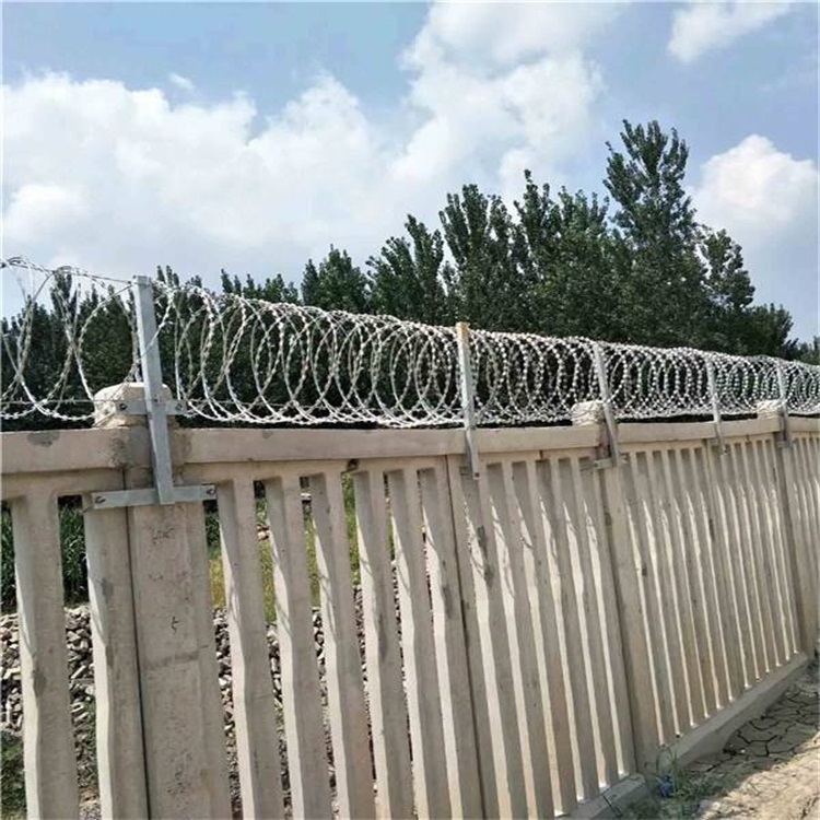 由于刺網(wǎng)造形獨(dú)特不易觸摸,因而能達(dá)到極好的防護(hù)隔離效果。刺絲滾籠是在兩條刀片刺網(wǎng)之間以不銹鋼片和鍍鋅鋼片強(qiáng)力夾和,展開后即呈交叉狀,美觀又實(shí)用,產(chǎn)品特點(diǎn):防腐、防老化、抗曬、耐候等特點(diǎn)。防腐形式有電鍍、熱鍍。